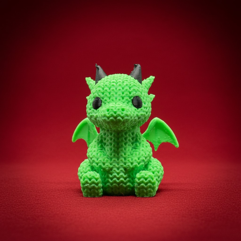 This legendary miniature features an intricate crochet-effect texture across its wings and scales, perfectly capturing the magic of a hand-stitched mythical beast with the sharp, durable detail of high-quality 3D printing.
